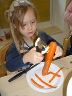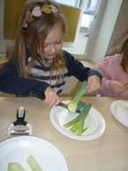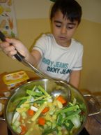 Zurück im Kindergarten wurde dann gemeinsam geschnippelt, gerührt und gekocht. Mit viel Freude und Neugier bereiteten die Kinder eine leckere Gemüsesuppe zu. Dabei lernten sie spielerisch, wie wichtig frische Zutaten und eine ausgewogene Ernährung sind.
