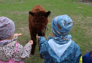 Nach der Naturwanderung zurück am Alpaka-Stall durften sich die Kinder von den Vierbeinern verabschieden und erhielten als Erinnerung einen tollen Alpaka-Anhänger geschenkt.