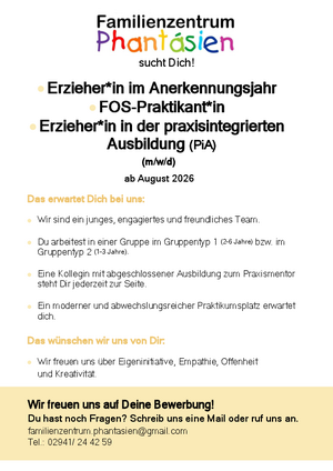 Zum 01. August 2026 suchen wir engagierte Auszubildende und Berufspraktikant:innen, die mit Freude, Herz und Kreativität unser Kita-Team bereichern.