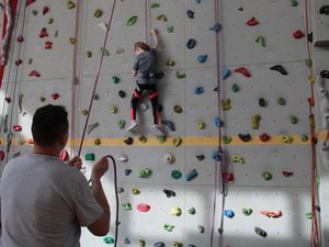 Nach einer kurzen Aufwärmphase lernten die Kinder auf spielerische Weise die ersten Schritte an der Kletterwand kennen. Anschließend ging es – natürlich gut gesichert – Schritt für Schritt nach oben. Mit viel Mut und Begeisterung meisterten die Kinder die Herausforderung.