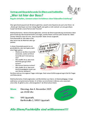 "Wer ist hier der Boss? Regeln einhalten, Grenzen setzen im Rahmen einer liebevollen Erziehung".