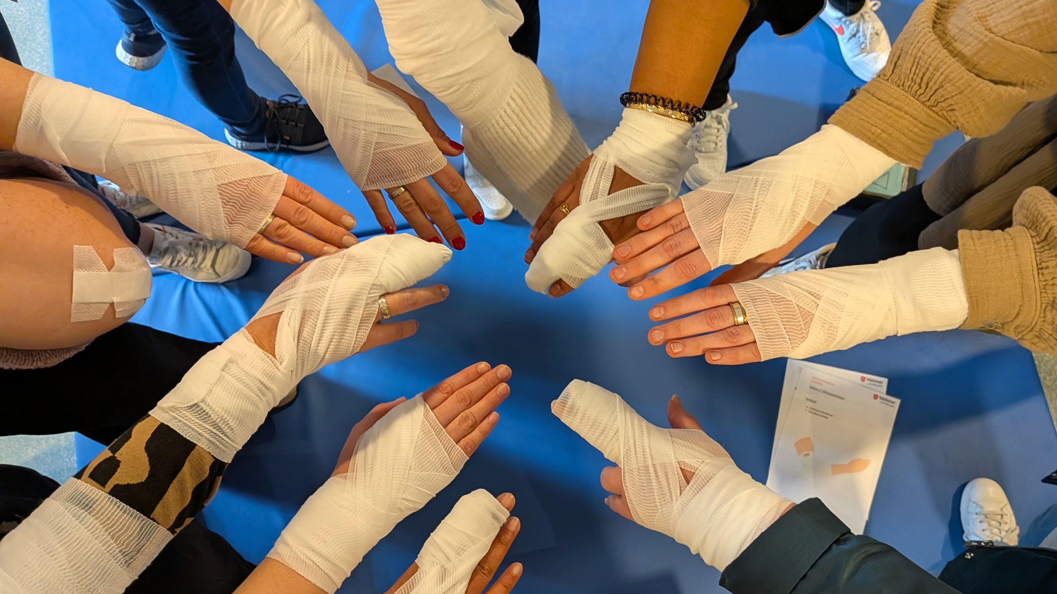Ob Verschlucken, Verbrühungen, Sonnenstich, Insektenstiche, Schürf- oder Platzwunden – wir haben viele wichtige Situationen besprochen und praktisch geübt. So stellen wir sicher, dass wir jederzeit gut vorbereitet sind – in der Hoffnung, dass ein Ernstfall natürlich nie eintritt.