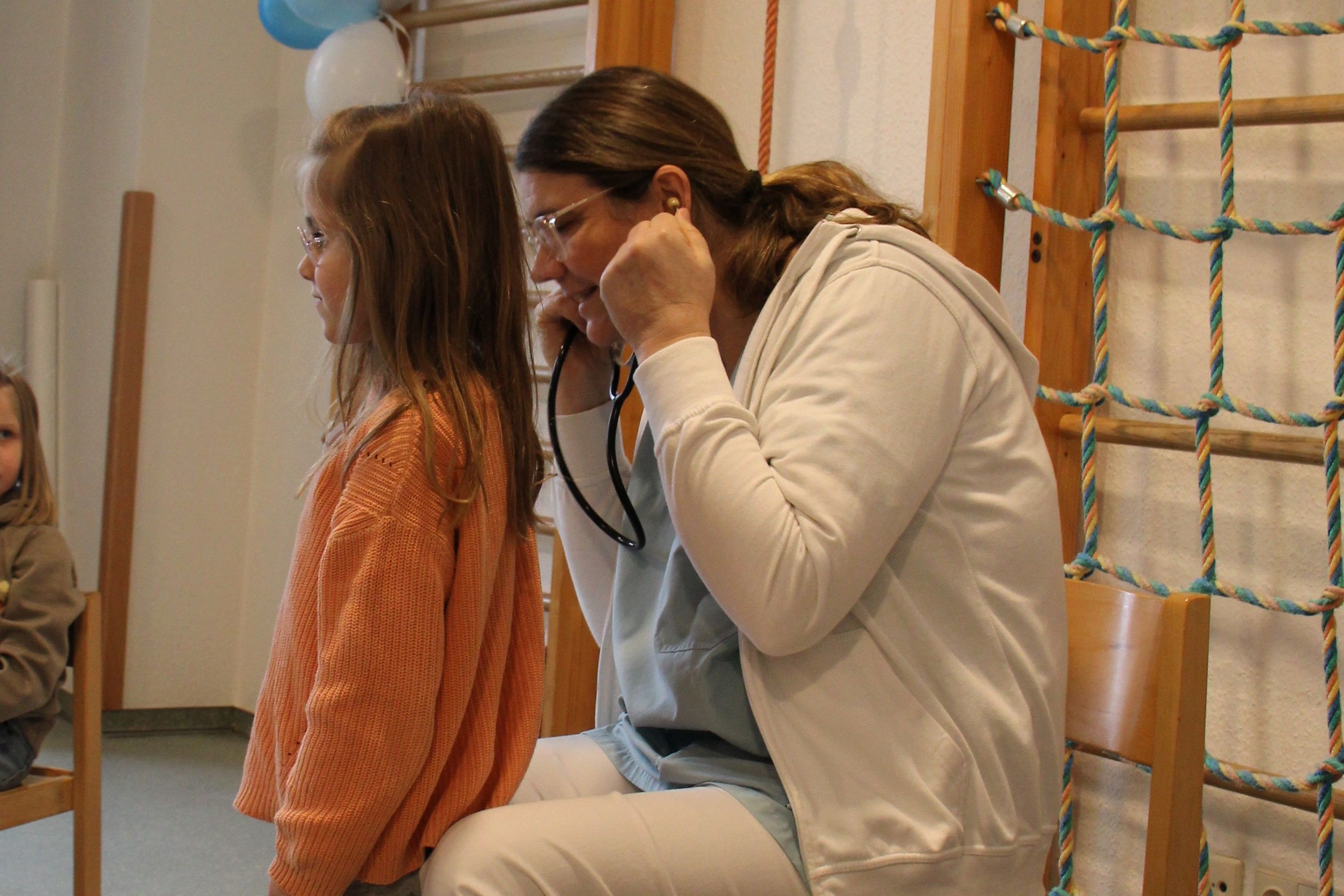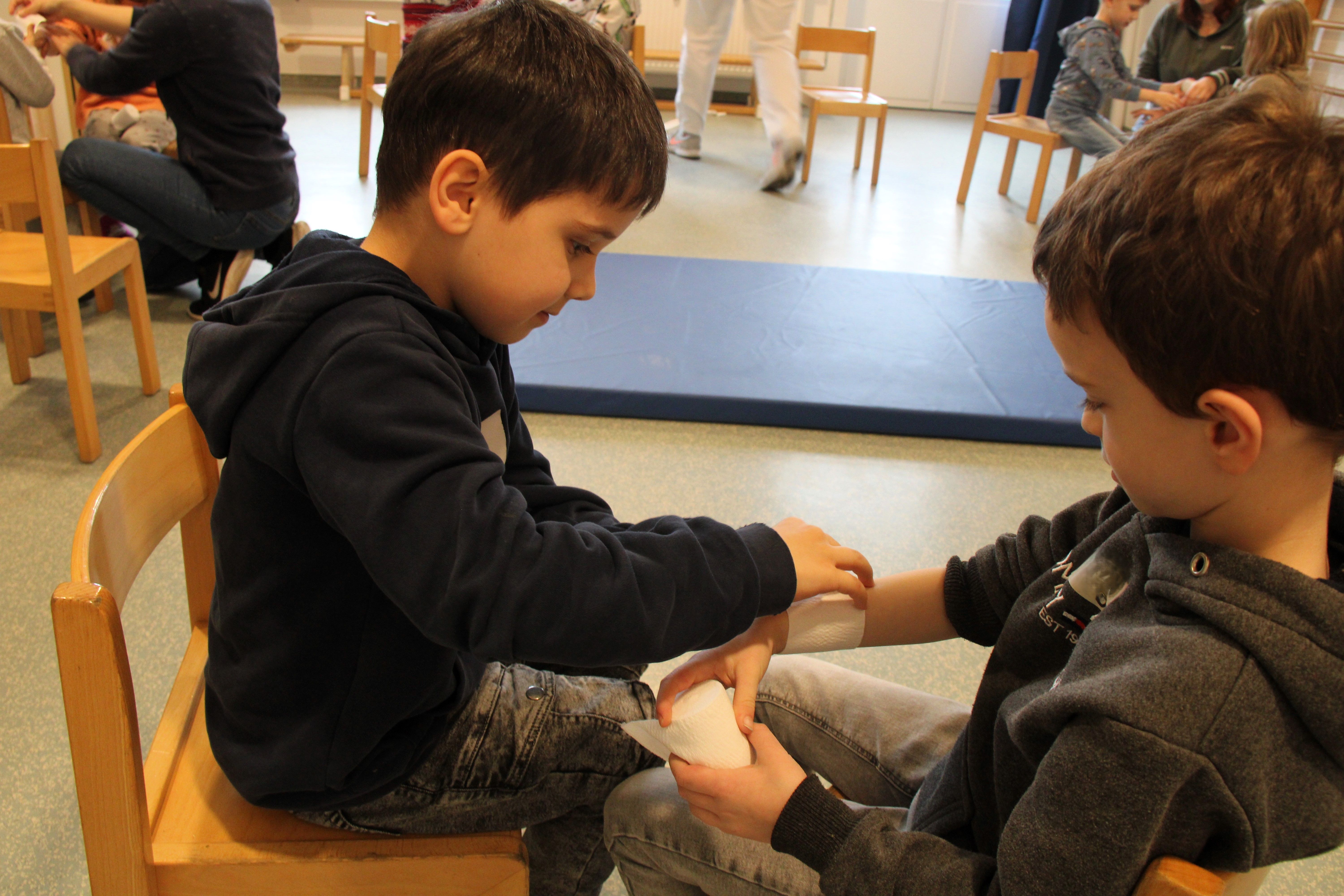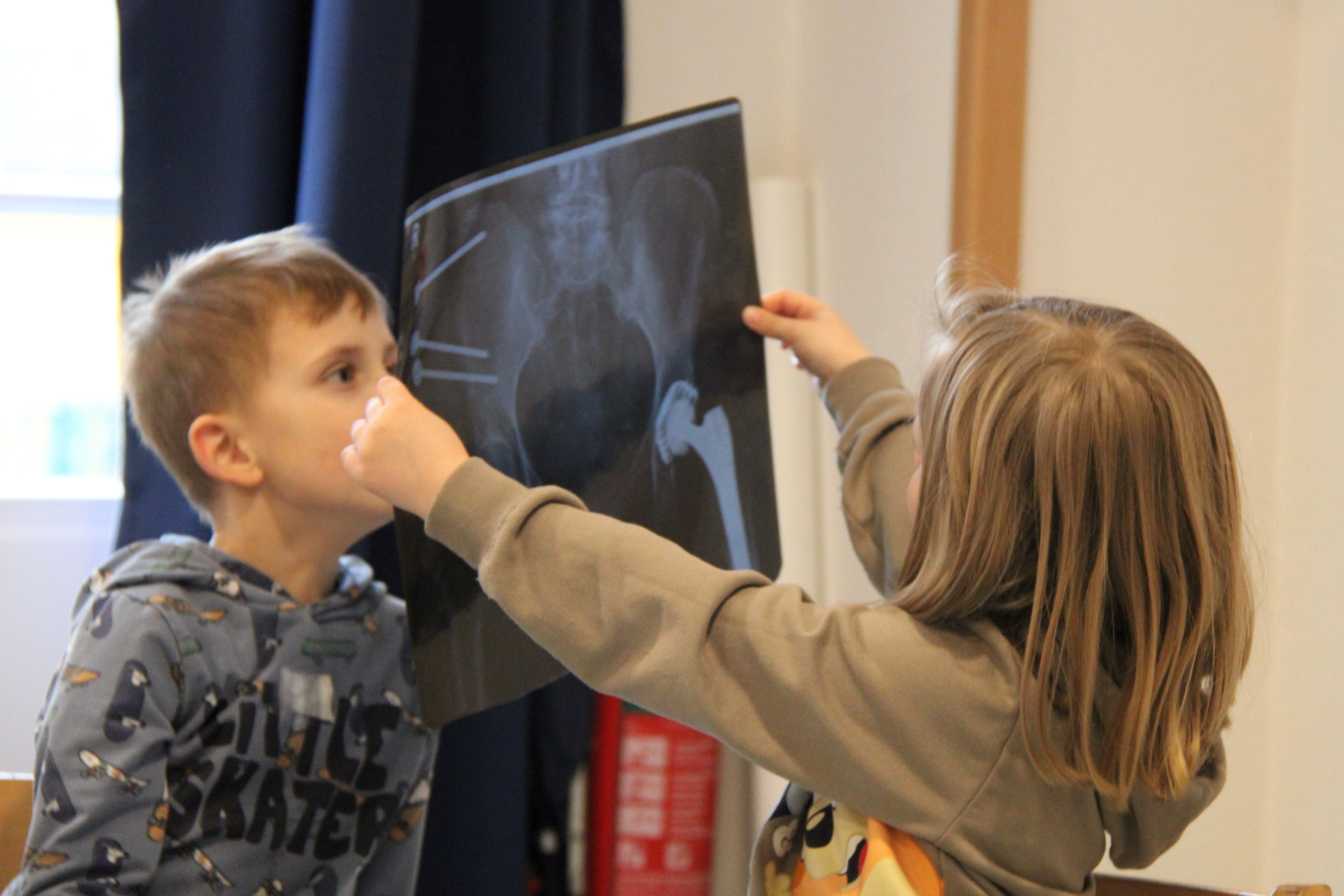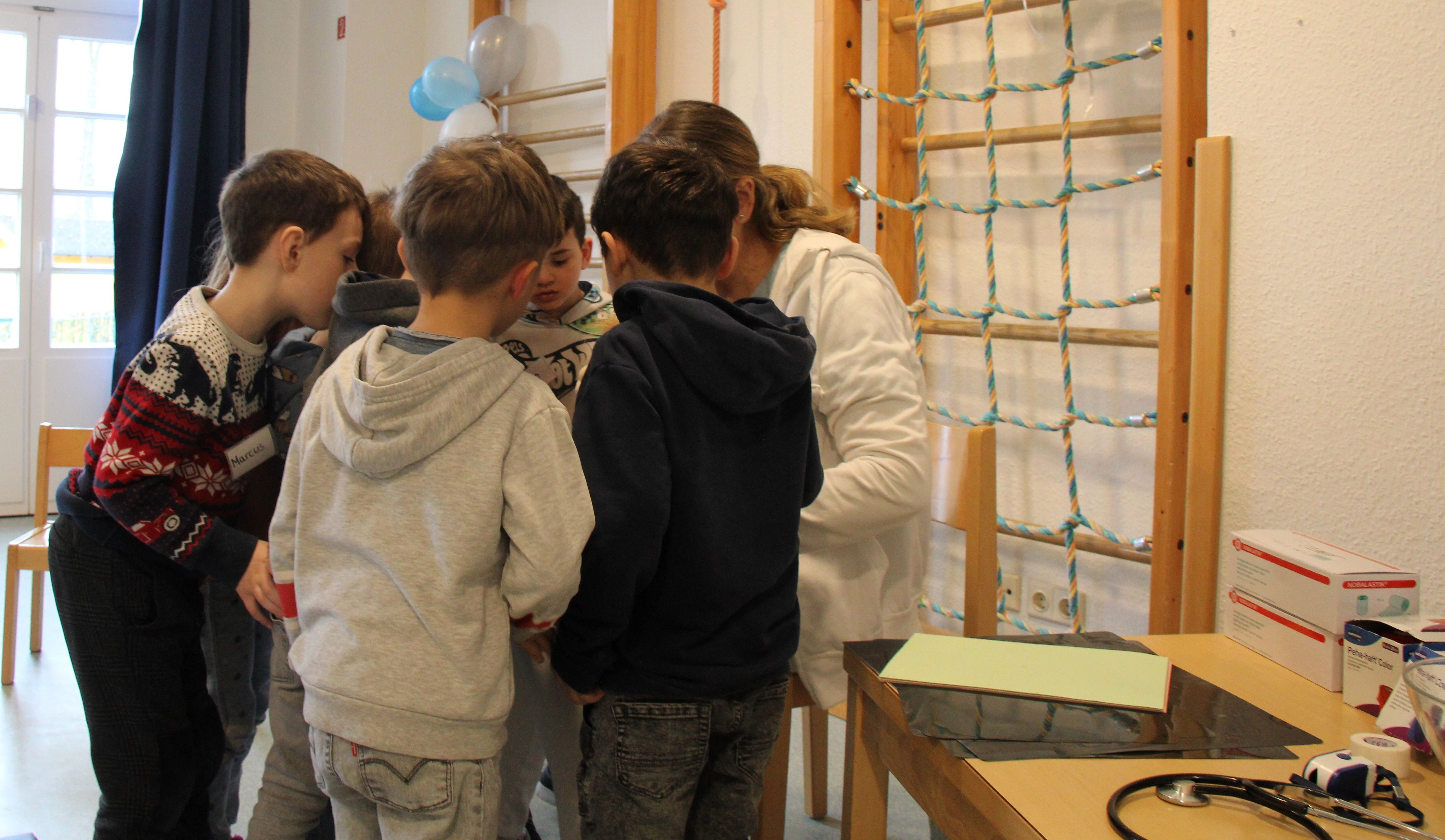 Besonders aufregend waren die Röntgenbilder: Wir konnten gesunde Knochen, Knochenbrüche und sogar Bilder nach einer Operation sehen. Mit einem Stethoskop durften wir unseren eigenen Herzschlag hören und beim Verbände-Anlegen hatten wir viel Spaß. Ein Kind bekam sogar eine echte Gipsschiene angefertigt!
