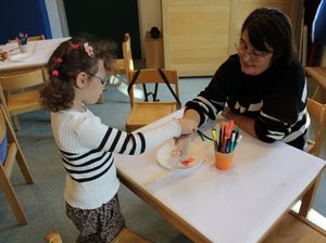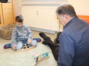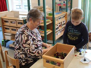 Die Kinder spielten mit ihren Großeltern also in den Gruppenräumen, in der Puppenecke, im Bälle-Bad, auf der Hochebene, am Kreativ-Tisch, auf dem Bauteppich und im Flur.
